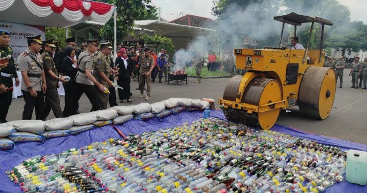 KEDIRI - Pemerintah Kabupaten Kediri bersama Bea Cukai Kediri memusnahkan 6.996 batang rokok ilegal hasil Operasi Gabungan Barang Cukai llegal Tahun 2025 dan 735 botol minuman beralkohol berbagai jenis hasil Operasi Penegakan Peraturan Daerah Minuman Beralkohol di wilayah Kabupaten Kediri sejak bulan April 2023 sampai dengan bulan Oktober 2025.
